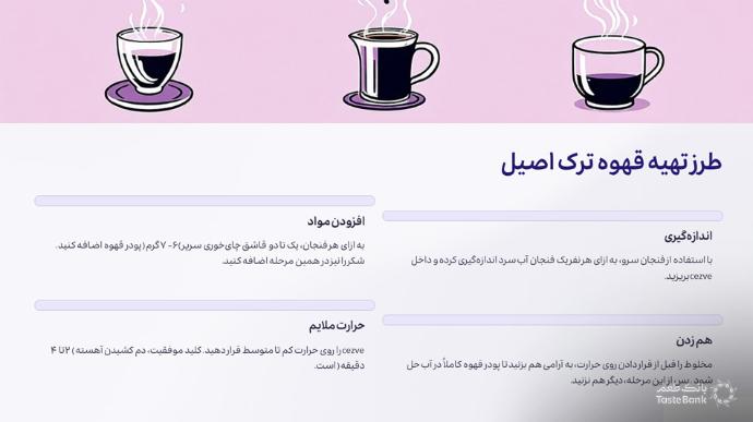 ویژگیهایی مانند آسیاب بسیار ریز، دمآوری بدون فیلتر در ظرف مخصوص cezve و سرو در فنجانهای کوچک سنتی، این روش را از سایر روشها متمایز میکند. تعریف قهوه ترک فراتر از یک نوشیدنی است؛ تجربهای کامل از آمادهسازی، پذیرایی و حتی گفتگو و پیشگویی با لِرد ته فنجان. اگر به دنبال نوشیدنیای با هویت فرهنگی، طعم خاص و مراسم دلنشین هستی، این مقاله آغاز یک ماجراجویی لذیذ خواهد بود.