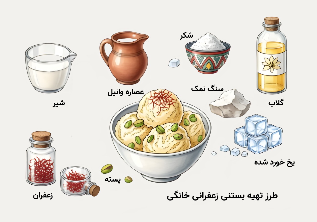 - محلول زعفران در صورت تمایل (جهت تهیه بستنی سنتی)
